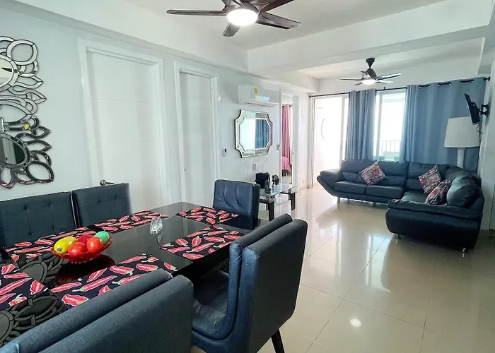 Morros Zoe 421The spacious 80 m² Apartamento Lujo Y Confort En El Mar Apartment Cartagena is located in Cartagena, at a distance of 4.9 km from Centro Cultural Leandro Diaz, and boasts a hot tub. The 2-bedroom…View details+More detailsCheck rates - Cb1629 | Suite Moderna Con Vista 180 Mar Ciudad