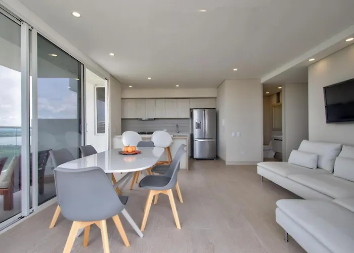 Call 20 # 16-66 Edificio Dominique Apto 1405 Cartagena De IndiasThe 87 m² Dominiqueplayaazul Apto De Lujo Con Jacuzzi Privado En Balcon Apartment is nestled in a beach area of Cartagena, around a 15-minute ride from Casa Cultural Colombo Alemana Language School…View details+More detailsCheck rates - Luxy 2Br At Paradise Oasis, 18 Min From Walled City