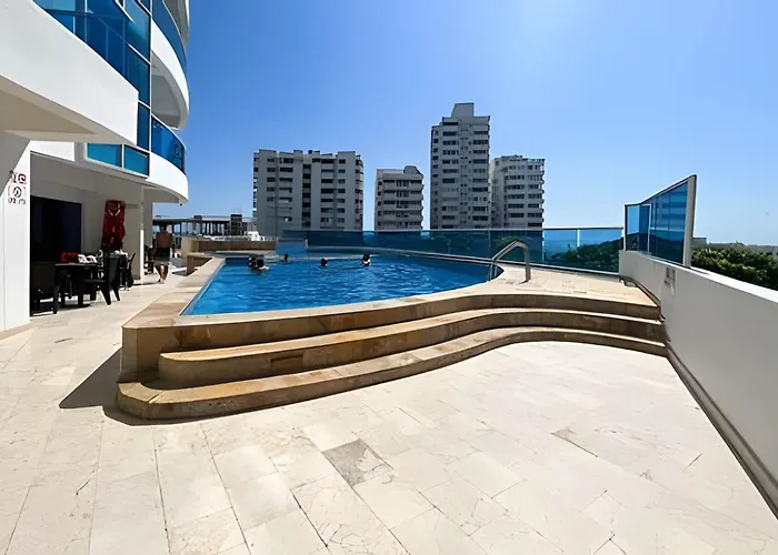 46c-29 Carrera 4El Apartamento Apartamento Con Vista Al Mar, Moderno Y Lujoso Cerca A Cuidad Amurallada Cartagena está a tan solo 1 km del Oceanario. Ofrece un balcón y una zona de estar con vistas a la piscina.Ver detalles+desde