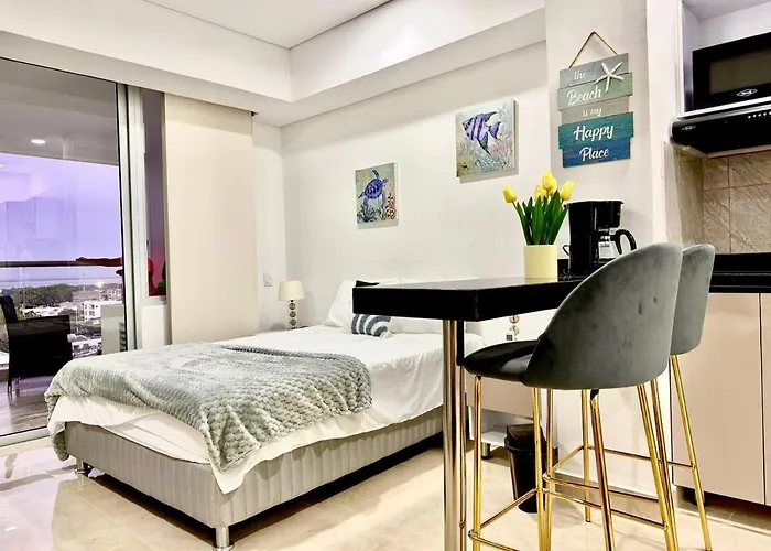 CrespoSituado en el barrio Crespo, a una distancia de 3 km de la Pie de la Popa, el Cb1531 Boho Suite Hermosa Vista 2Min-Aeropuerto Cartagena ofrece vistas al lago.Ver detalles+Más detallesComprobar tarifas - 12 personas en Morros apto familiar frente al mar Cartagena 4 hab playa piscina